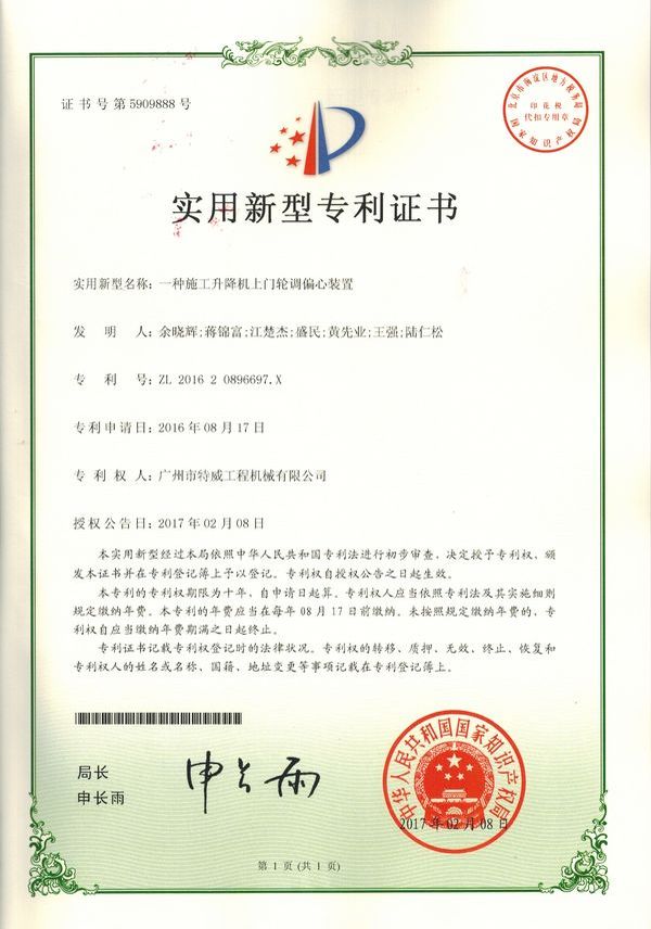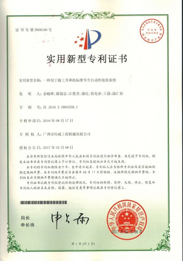 廣州市特威工程機(jī)械有限公司地處廣州市白云區(qū)神山鎮(zhèn),廣清高速神山出口附近,是一家施工升降機(jī)的專業(yè)生產(chǎn)廠家。公司成立于2011年,占地100000多平方米,注冊資金1060萬元,現(xiàn)有員工300余人其中工程技術(shù)人員33人,高級技術(shù)人員52人。